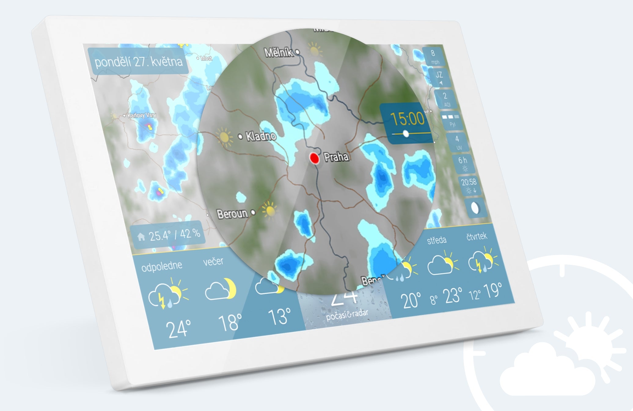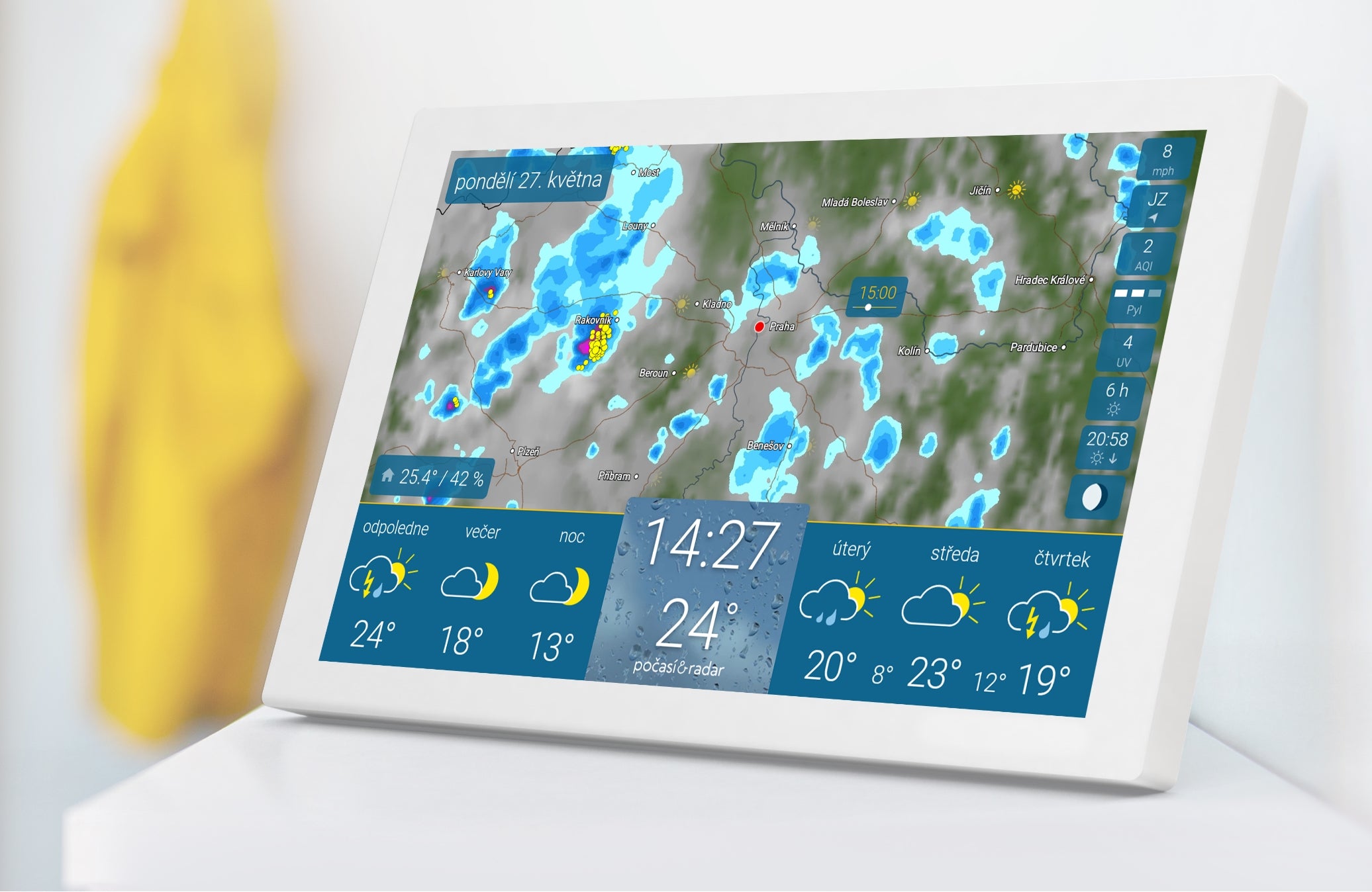 Meteodisplej počasí & radar home je více než jen meteostanice. Díky možnosti individuálního zobrazení, automatické aktualizaci údajů o počasí a updatu softwaru je jeho každodenní používání zcela pohodové. Počasí budete mít k dispozici na první pohled, což vám ulehčí plánování vašeho dne.