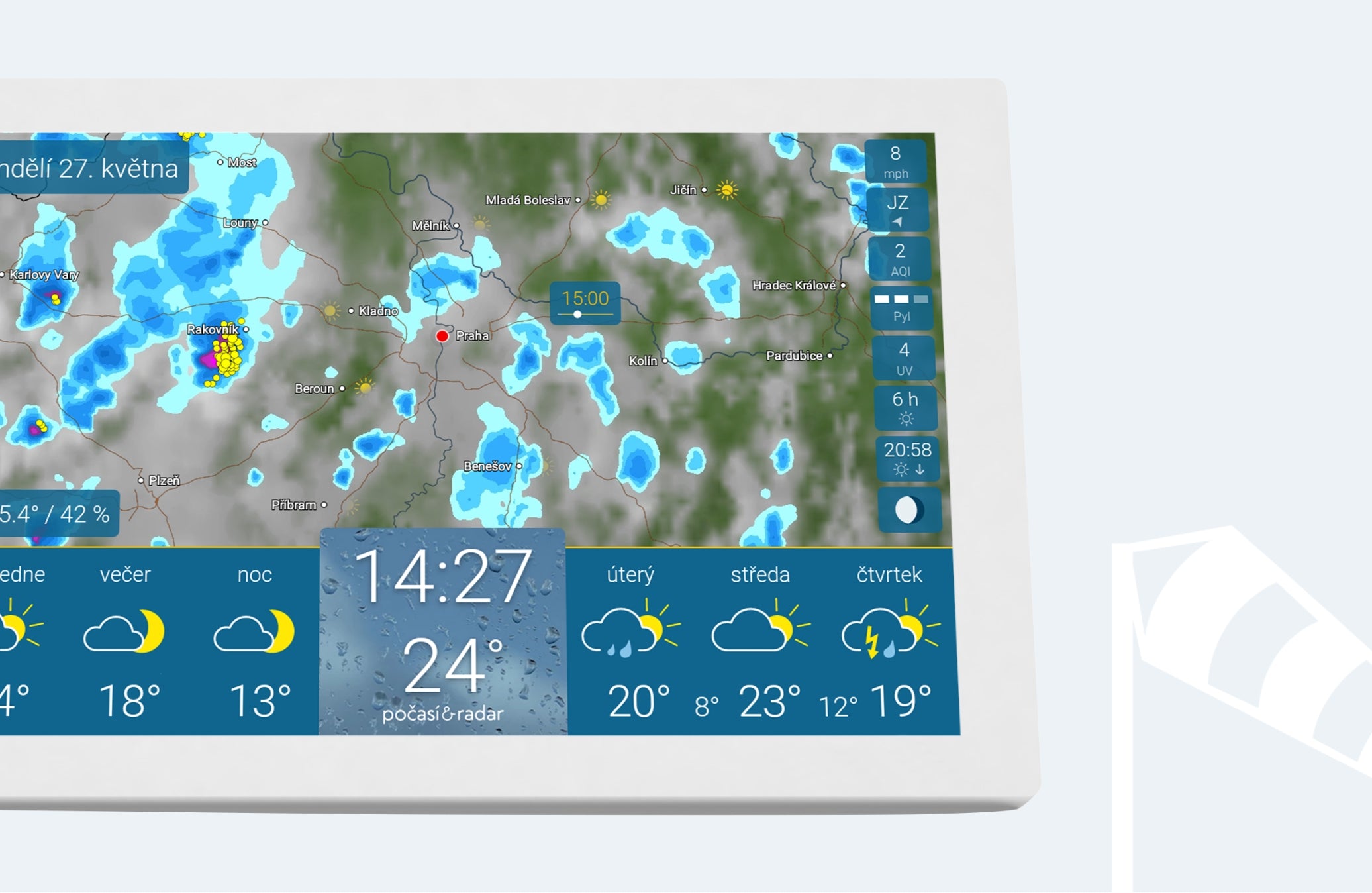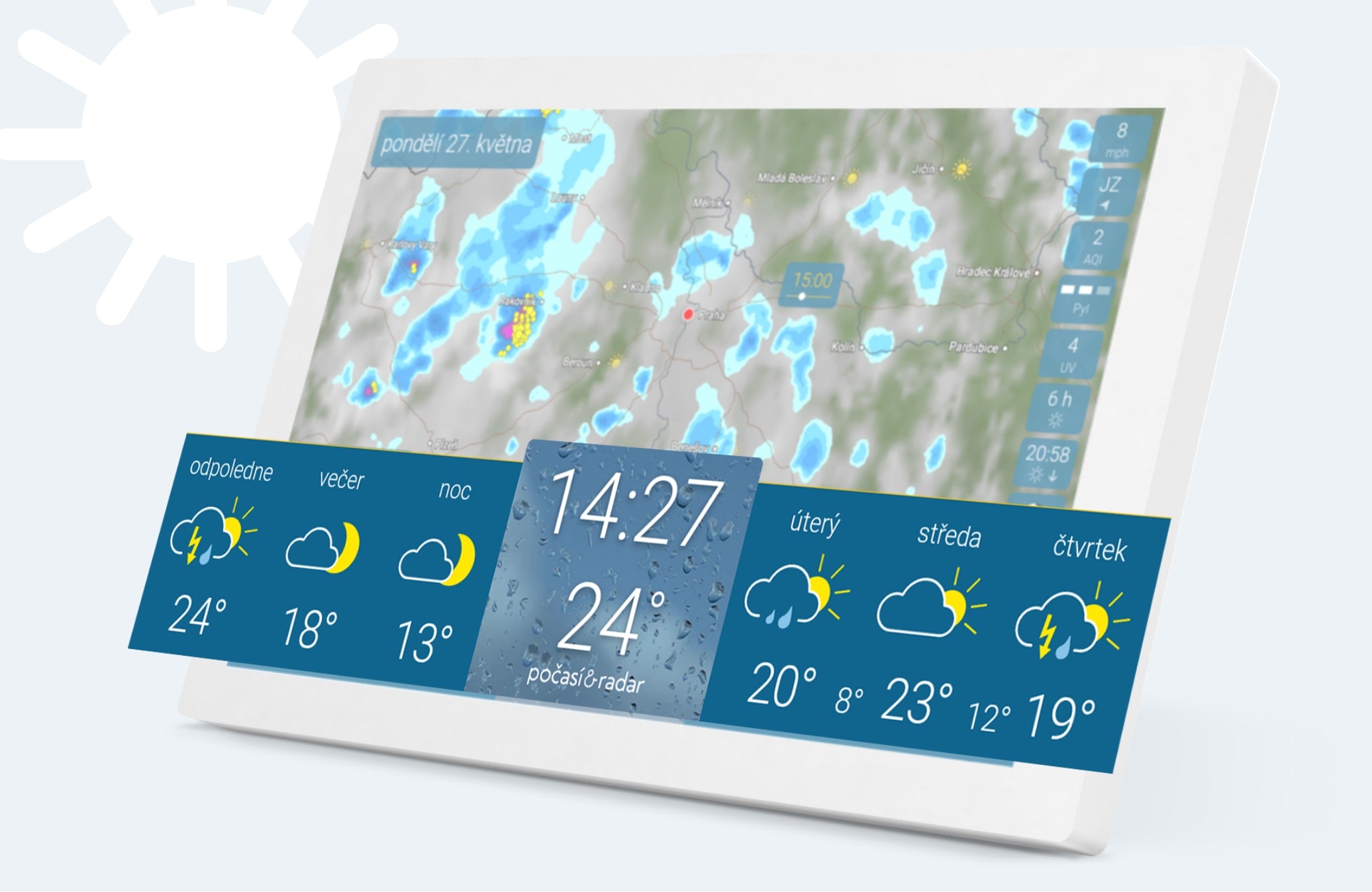 Meteodisplej počasí & radar home je více než jen meteostanice. Díky možnosti individuálního zobrazení, automatické aktualizaci údajů o počasí a updatu softwaru je jeho každodenní používání zcela pohodové. Počasí budete mít k dispozici na první pohled, což vám ulehčí plánování vašeho dne.