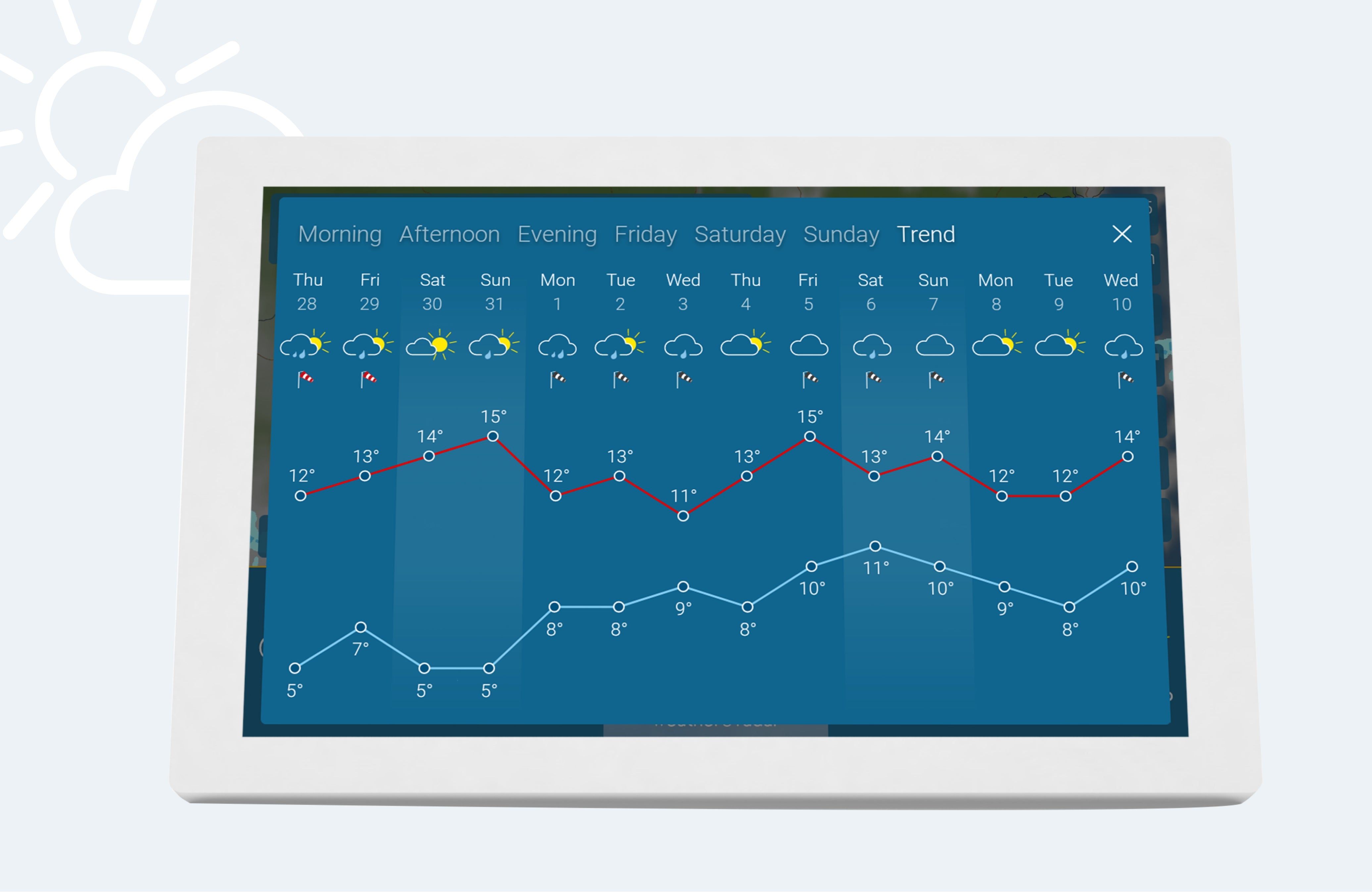 weather & radar home is designed for continuous operation. Customizable usage times, automatic retrieval of weather data and installation of software updates make the