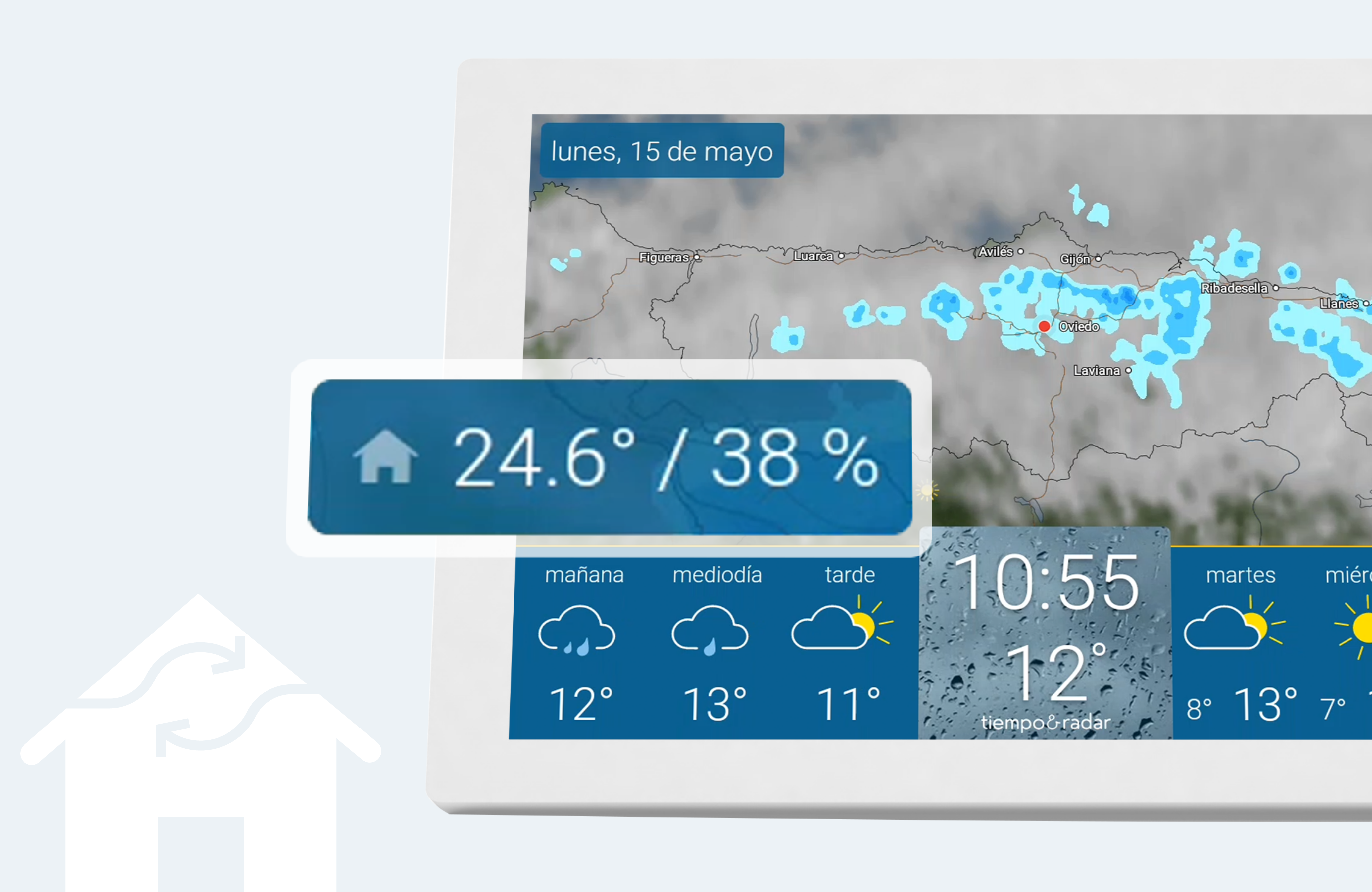 Integrado en la estación, el sensor mide la temperatura y la humedad de interiores, con el fin de controlar el ambiente en el hogar y regular la temperatura de manera eficiente.