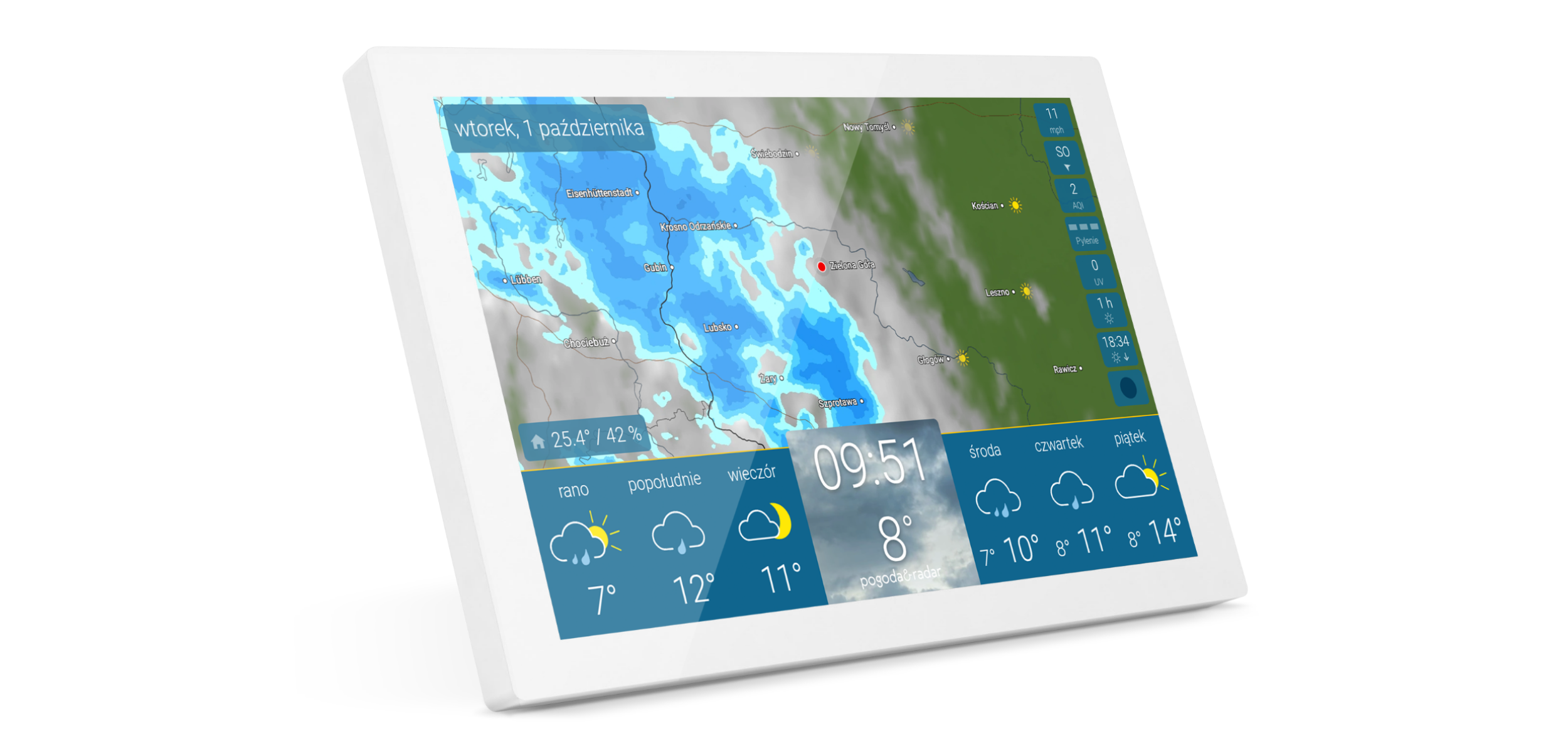 Radar pogodowy plus aż 8 dodatkowych parametrów pogodowych.