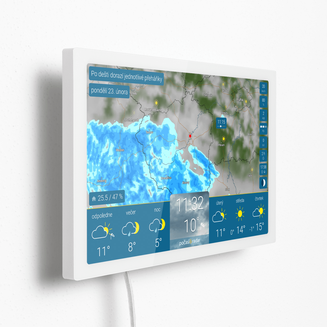- Počasí vždy na očích – díky speciálně vyvinutému nástěnnému držáku.