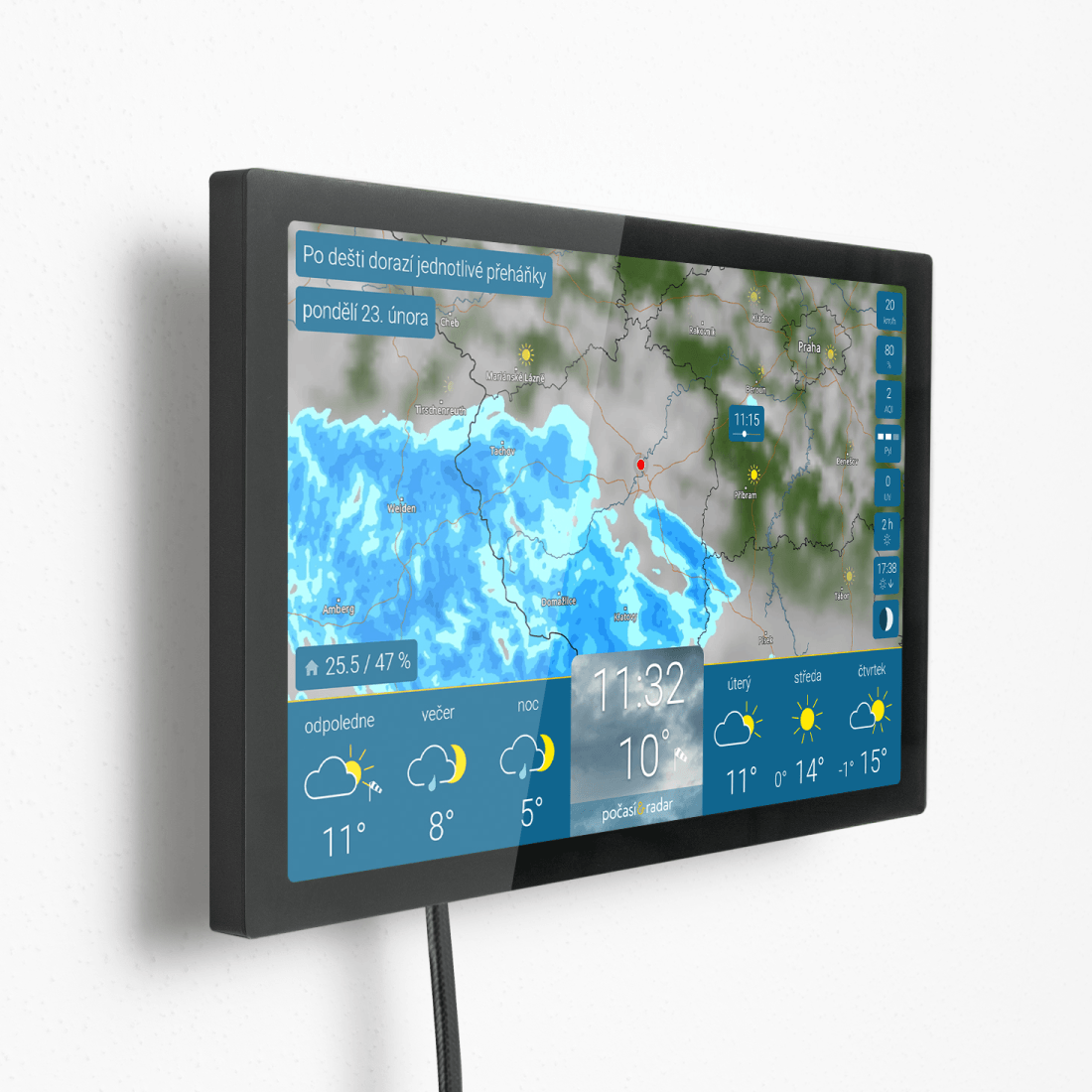 - Počasí vždy na očích – díky speciálně vyvinutému nástěnnému držáku.