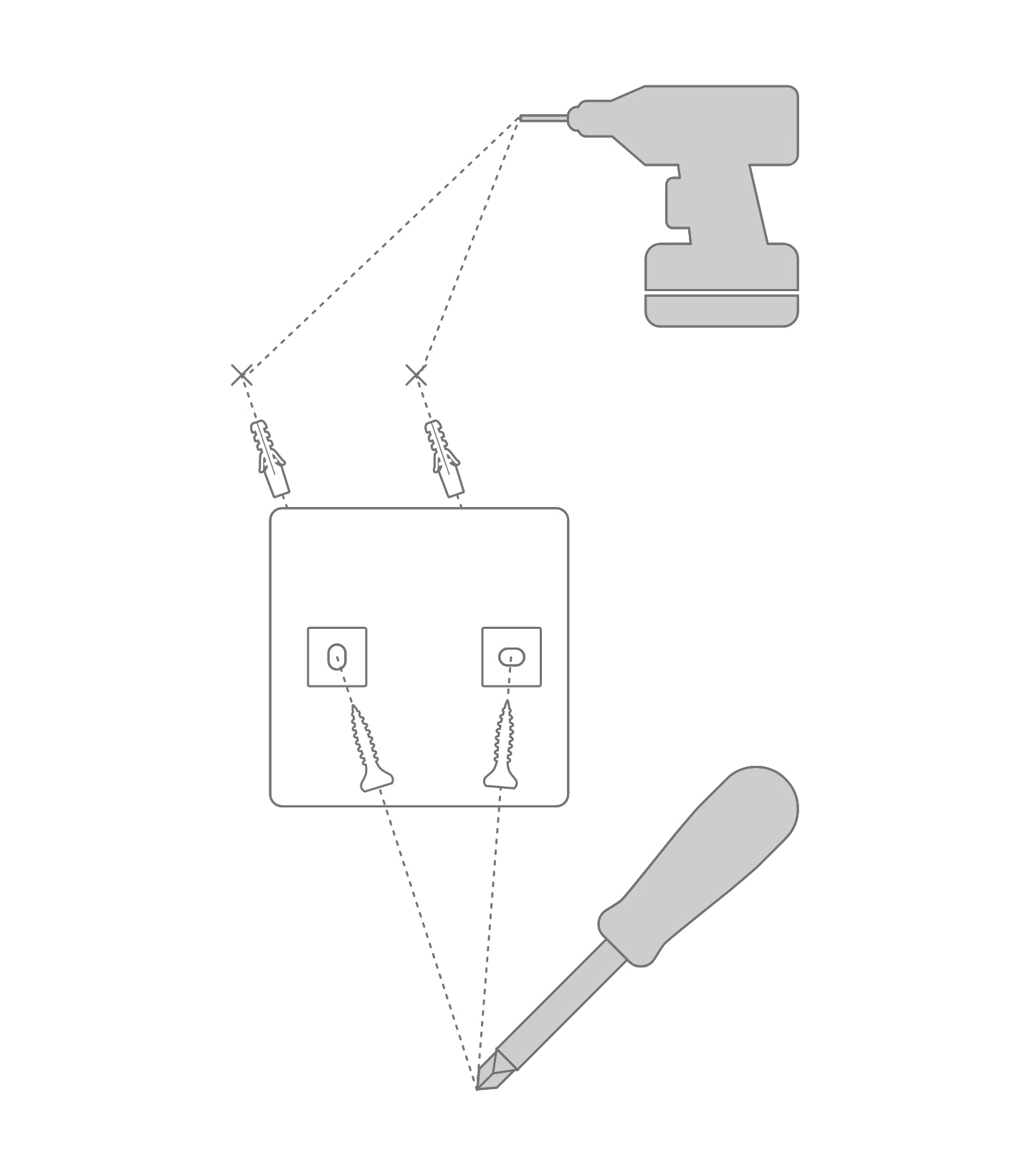Vyvŕtajte diery, vložte do nich kolíky a pomocou skrutiek upevnite nástenný držiak na stenu.